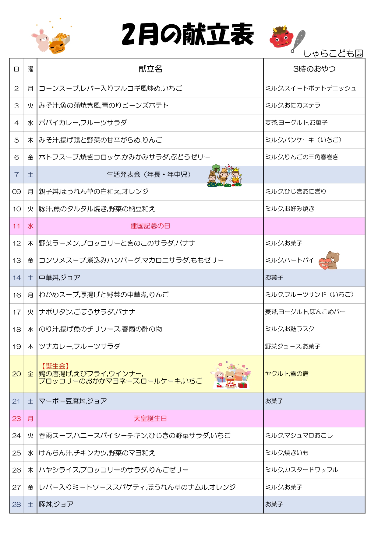 令和5年度 2月の献立表